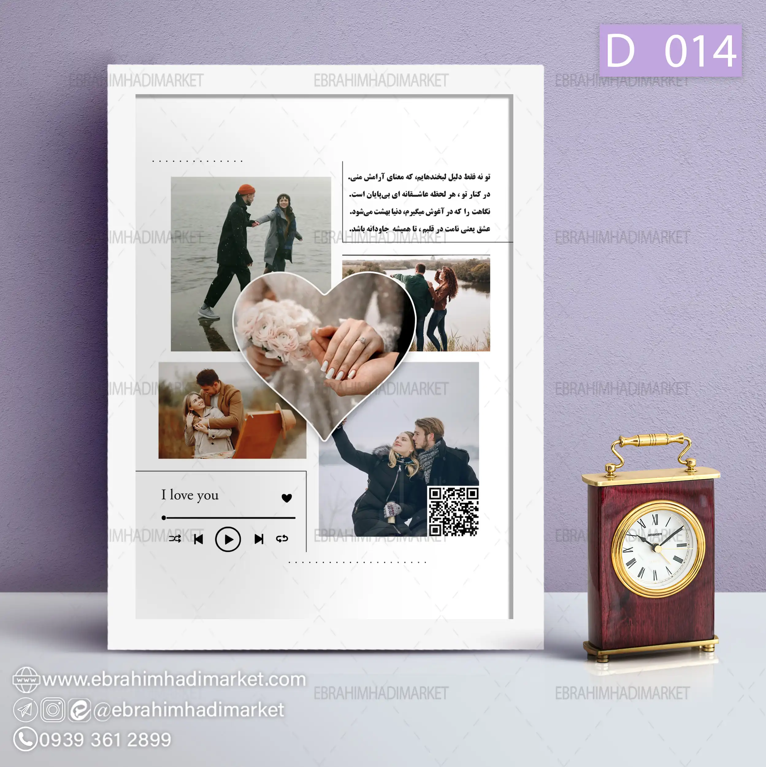 قاب موزیکال از پی وی سی 3 سانتیمتری درست شده و در رنگ های سفید و مشکی و طلایی گلدار موجوده. طرح مورد نظر شما روی کاغذ ابریشمی سیلک چاپ میشه که از کیفیت فوق العاده ای برخوردار هست. روی قاب نیز شیشه قرار داره.